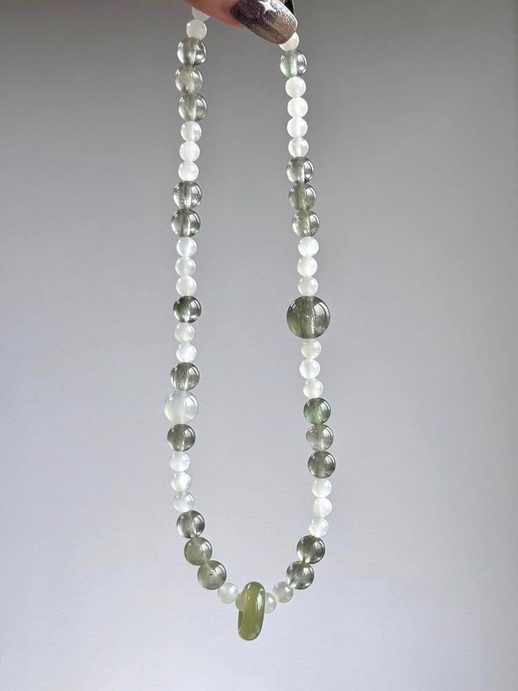 🧿 Crystal Material: Double-Strand Moonstone, Green Rutilated Quartz, Hetian Jade